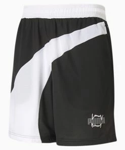 Backed by PUMA’s sports heritage and legendary history on the court, these Flare Basketball Shorts are retro-inspired and game-ready. Made from a lightweight mesh fabric with signature dryCELL moisture-wicking tech, these shorts will keep you cool and dry as you tear up the court. A Formstrip colorblocked panel adds a classic PUMA look.<h3> FEATURES & BENEFITS </h3><ul><li>dryCELL: Technical fabric wicks moisture away from skin to keep you dry and comfortable</li></ul><h3> DETAILS </h3><ul><li>Regular fit</li><li>Above the knee length</li><li>Elastic waistband</li><li>Colorblocked Formstrip panel across front</li><li>PUMA Hoops graphic at lower left leg</li><li>100% Polyester mesh</li></ul>