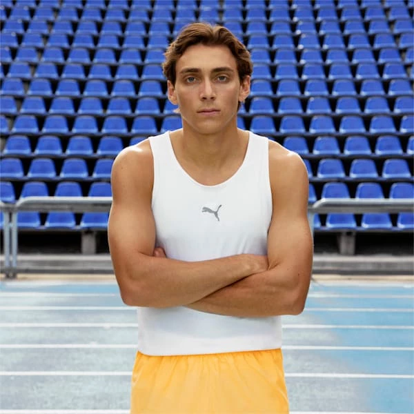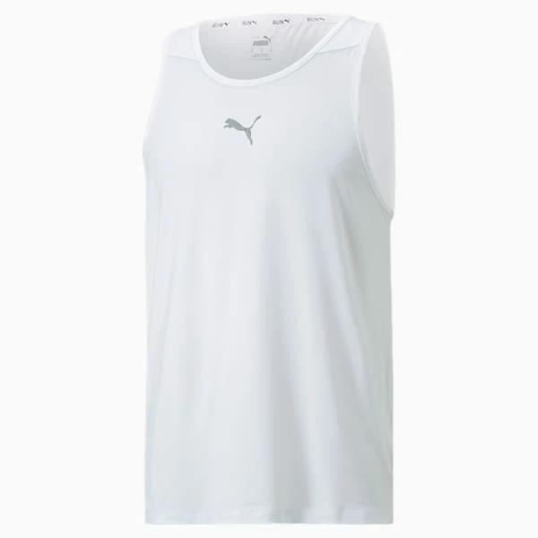 <h3> PRODUCT STORY </h3><p>Ultra-soft fabric and a deep cut side earn the Run CLOUDSPUN Singlet high marks in the comfort department. Adding to the performance top is advanced moisture-wicking technology to keep sweat at bay on race day.</p><h3> FEATURES & BENEFITS </h3><ul><li>CLOUDSPUN: Custom-milled performance poly/spandex blend, this fabric meets the highest performance standards while still feeling like an ultra soft cotton</li><li>DRY: dryCELL: Performance technology designed to wick moisture from the body and keep you free of sweat during exercise</li></ul><h3> DETAILS </h3><ul><li>Regular fit</li><li>Mesh panel on the back</li><li>Crew neck</li><li>Reflective design elements</li><li>PUMA Cat Logo on the front</li></ul>