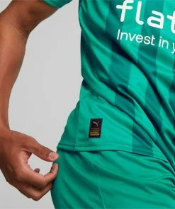 <h3> PRODUCT STORY </h3><p>A staple in the game of soccer, the striped jersey is redesigned to keep up with Die Fohlen. The 2022/23 Borussia Mönchengladbach away jersey’s green-on-green tonal stripes combine sharp edges with blur effects for a bold, contemporary look. The PUMA Cat, sponsor logo, and meistersterne are featured in white, adding contrast to the green jersey.</p><h3> FEATURES & BENEFITS </h3><ul><li>DRY: dryCELL: Performance technology designed to wick moisture from the body and keep you free of sweat during exercise</li><li>FOREVER BETTER: Made with at least 20% recycled material as a step toward a better future</li><li>MIDORI: Made with the bio-based finishing treatment miDori® bioWick</li></ul><h3> DETAILS </h3><ul><li>Regular fit</li><li>Set-in sleeve construction with raglan back seam</li><li>Flat knit V-neck</li><li>PUMA Cat Logo on the chest and sleeves</li><li>Official team crest on the chest</li></ul>