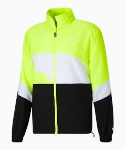 <h3> PRODUCT STORY </h3><p>Kit yourself out in retro athleisure pieces reimagined for the modern fan, inspired by the astounding legacy of basketball legend Walter “Clyde” Frazier in our Clyde collection of sportswear. Our Clyde Basketball Jacket captures all the romance of ’70’s design with tonal color-blocking and rounded asymmetrical shapes inspired by PUMA’s own PUMA Formstrip, all paired with the latest athletic innovations to make this piece an instant classic.</p><h3> FEATURES & BENEFITS </h3><ul><li>WATER REPELLENT: PUMA’s solution for water repellent coating on shell fabric to stay protected from the rain</li><li>windCELL: PUMA’s designation for highly functional materials that provide a durable yet breathable protection against wind chill while helping maintain body temperature during exercise</li></ul><h3> DETAILS </h3><ul><li>Stand-up collar with contrast-color full-zip closure</li><li>Elasticated cuffs</li><li>Waistband with internal elasticated drawstring</li><li>Color-blocked design</li><li>Embroidered accent at right chest incorporating PUMA Wordmark and PUMA Formstrip</li></ul>
