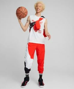 <h3> PRODUCT STORY </h3><p>Kit yourself out in retro athleisure pieces reimagined for the modern fan, inspired by the astounding legacy of basketball legend Walter “Clyde” Frazier in our Clyde collection of sportswear. Our Clyde Basketball Pants feature retro-inspired color-blocking and come outfitted with our windCELL and WATER REPELLENT technologies.</p><h3> FEATURES & BENEFITS </h3><ul><li>WATER REPELLENT: PUMA’s solution for water repellent coating on shell fabric to stay protected from the rain</li><li>windCELL: PUMA’s designation for highly functional materials that provide a durable yet breathable protection against wind chill while helping maintain body temperature during exercise</li></ul><h3> DETAILS </h3><ul><li>Elasticated waistband</li><li>Elasticated cuffs</li><li>Color-blocked design</li></ul>