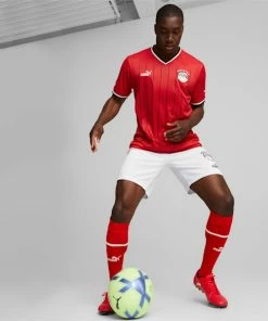 <h3> PRODUCT STORY </h3><p>Honoring the most successful nation in the history of African national team competition, the 2022 Egypt Home kit features seven vertical stripes representing the seven titles won by the Pharaohs – from the inaugural tournament in 1957 to the unprecedented three titles in a row between 2006 and 2010.</p><h3> FEATURES & BENEFITS </h3><ul><li>dryCELL: Performance technology designed to wick moisture from the body and keep you free of sweat during exercise</li><li>Recycled Content: Made with at least 20% recycled material as a step toward a better future</li></ul><h3> DETAILS </h3><ul><li>Regular fit</li><li>V-neck</li><li>PUMA No. 1 Logo on the chest</li><li>PUMA Cat Logo on the sleeves</li><li>Official team crest on the chest</li></ul>