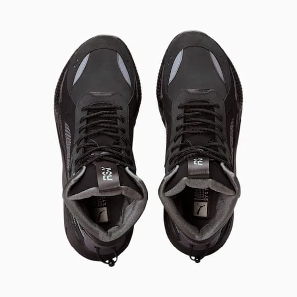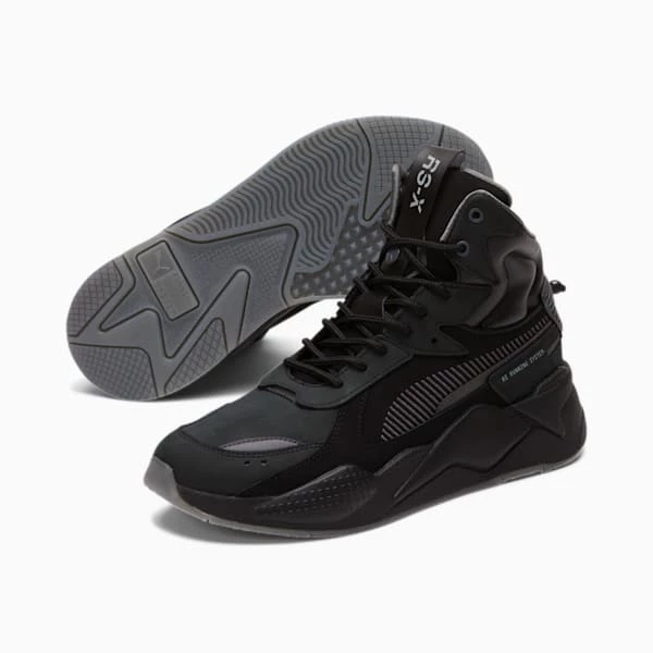 RS-X celebrates re-invention and re-imagining to the extreme. This season, we remix the retro-inspired silhouette with a functional new mid-top cut and 3M reflective hits for added visibility.<h3> FEATURES & BENEFITS </h3><ul><li>Running System (RS): PUMA’s retro running technology that offers cushioning from the forefoot through the heel</li></ul><h3> DETAILS </h3><ul><li>Mid-top silhouette</li><li>Soft nubuck upper with 3M reflective hits</li><li>Full lace closure</li><li>Soft padded tongue and collar</li><li>Lightweight PU midsole for soft cushioning</li><li>Bulky TPU pieces in the midsole</li><li>Rubber outsole for traction and grip</li><li>Graphic PUMA Formstrip at lateral side</li><li>Woven webbing pull loop at tongue with RS-X branding</li></ul>