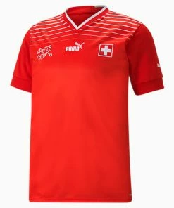 <h3> PRODUCT STORY </h3><p>Suisse bring back a classic. Reimagined for a new era, this retro 2022 Switzerland Home jersey honors the generation of players that brought the nation back to the biggest stages in world football during the mid-nineties. Hopp Schwiiz!</p><h3> FEATURES & BENEFITS </h3><ul><li>DRY: dryCELL: Performance technology designed to wick moisture from the body and keep you free of sweat during exercise</li><li>FOREVER BETTER: Made with at least 20% recycled material as a step toward a better future</li></ul><h3> DETAILS </h3><ul><li>Regular fit</li><li>Set-in sleeve construction with raglan back seam</li><li>Flat knit V-neck</li><li>PUMA No. 1 Logo on the chest</li><li>PUMA Cat Logo on the sleeves</li><li>Official team crest on the chest</li></ul>