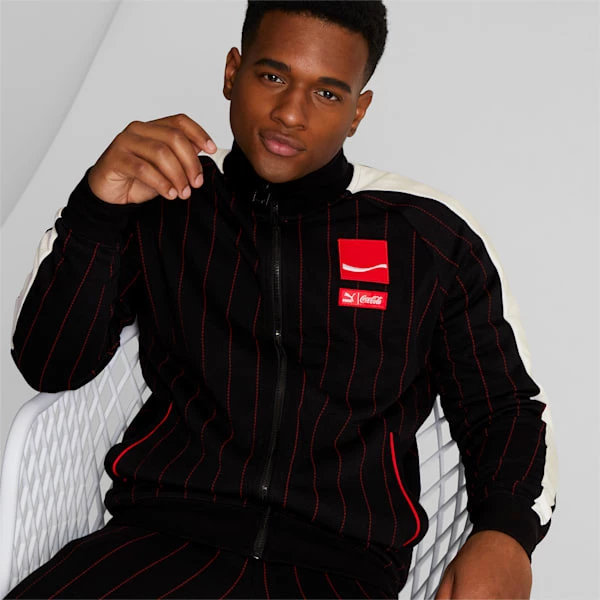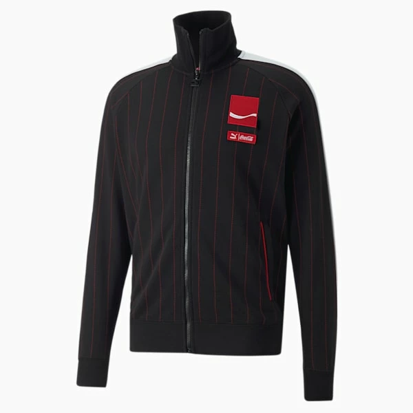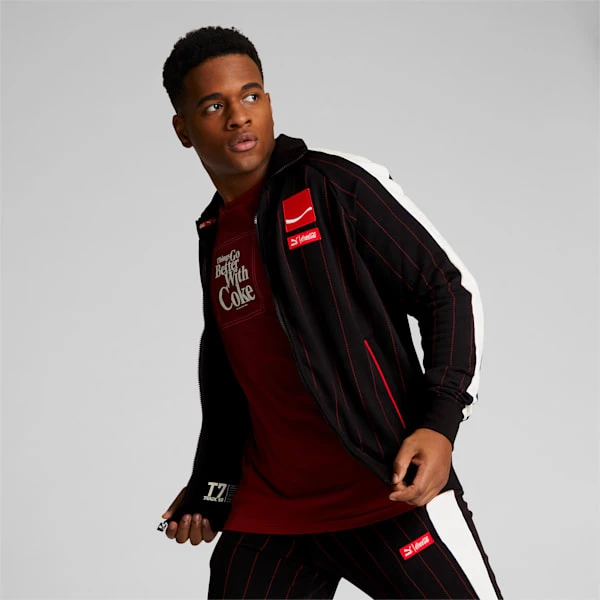 <h3> PRODUCT STORY </h3><p>PUMA x COCA-COLA is the coming together of two iconic brands who share a profound history, a sense of positivity, and an ability to move culture forward. Collection pieces, like this beautifully revamped T7 track jacket, incorporate both brands’ DNA with a future-retro design language and, of course, Coca-Cola’s classic branding.</p><h3> FEATURES & BENEFITS </h3><ul><li>COTTON: Cotton in PUMA products comes from farms with a focus on sustainable farming such as water efficiency and soil health protection. Learn more: PUMA.com/forever-better</li><li>FOREVER BETTER: Made with at least 20% recycled material as a step toward a better future</li></ul><h3> DETAILS </h3><ul><li>Regular fit</li><li>French terry</li><li>Stand-up collar with full zip</li><li>Co-branded PUMA x Coca-Cola lock-up badge on chest</li><li>Hairy felt embroidered badge on chest</li><li>Jacquard pinstripes</li><li>T7 panel inserts</li></ul>